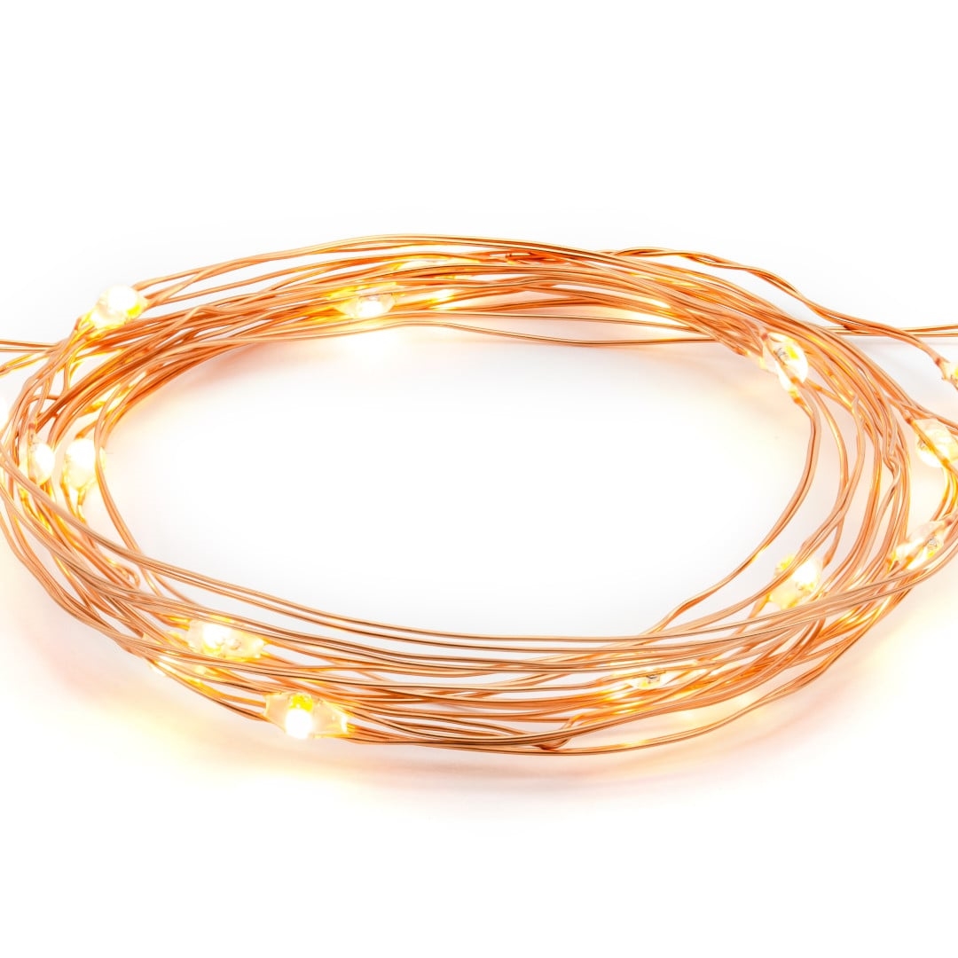 Dekorative LED-lys på kobbertråd med 20 stk. LED lys, varm hvid. Længde på ledningen ca. 1,90 m, længde på ekstra ledning ca. 30 cm.