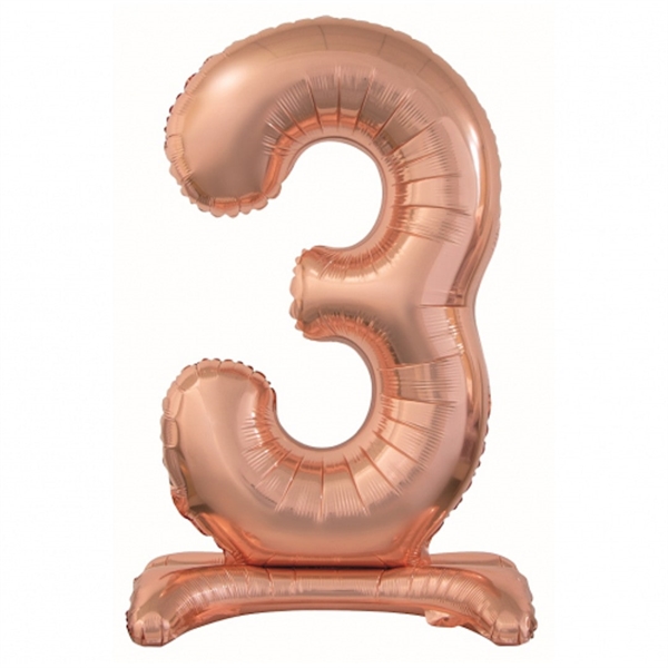 3 tal roseguld stående folieballon 74 cm.