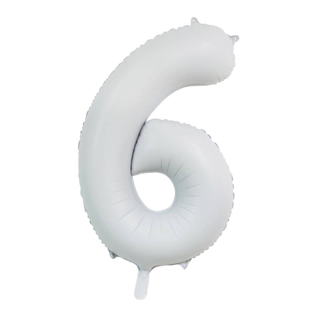 6 tal Mat Hvid folieballon 86 cm.