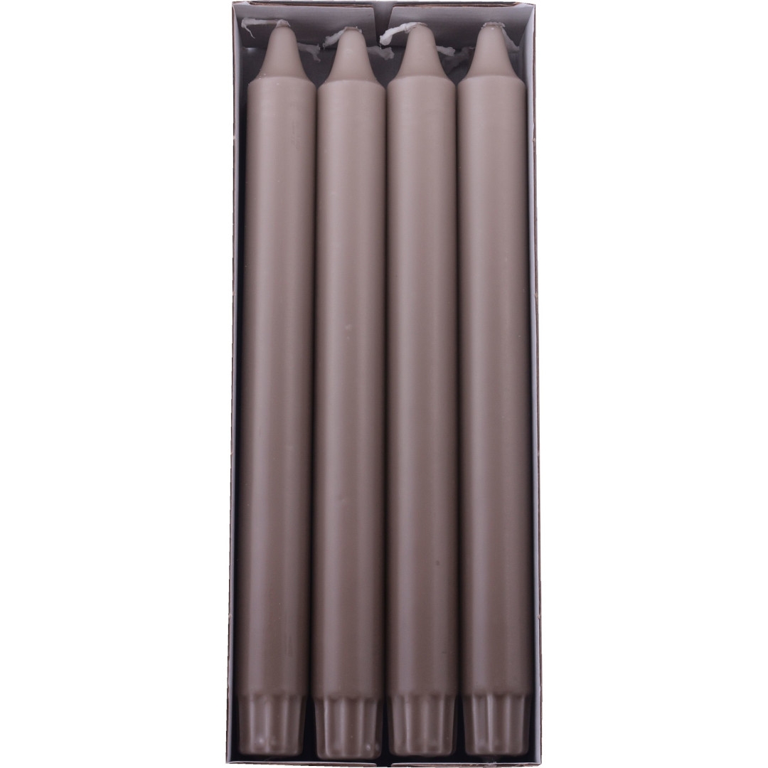 8 Stk. Ren Stearin kronelys Mørk Sand 24 cm.