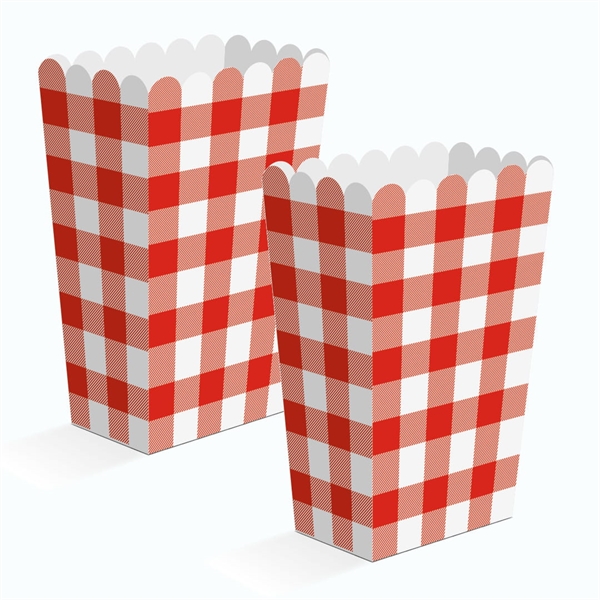 8 stk. Snack/popcorn bægre Rød/hvid ternet
