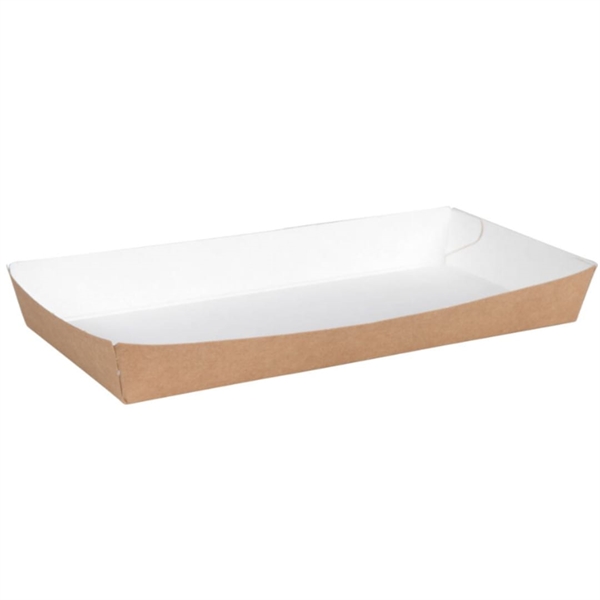 Abena pølsebakke pap 20x10 cm. hvid/brun m. kant 100 stk