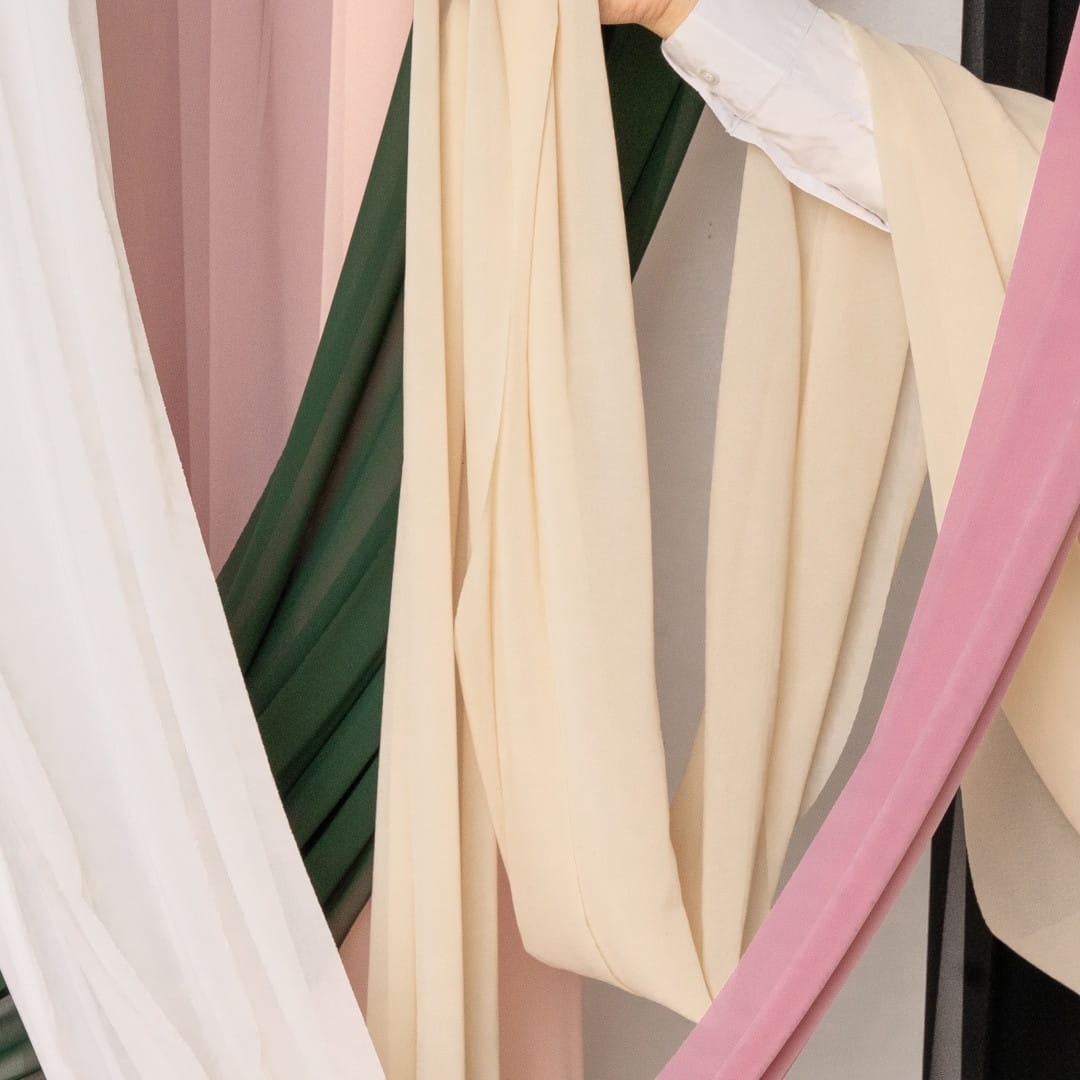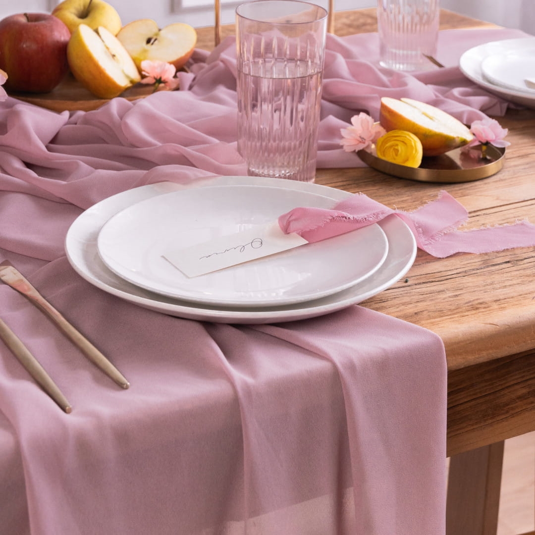 Chiffon stof Bordløber 48 cm. x 5 meter Misty Blå