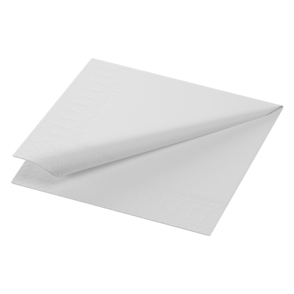 Hvid Dunilin middagsserviet Kraftig og stoflignende Eksklusiv og flot kvalitet Størrelse: 40x40 cm. 1/4 fold Indhold: 45 stk. pr. pakke
