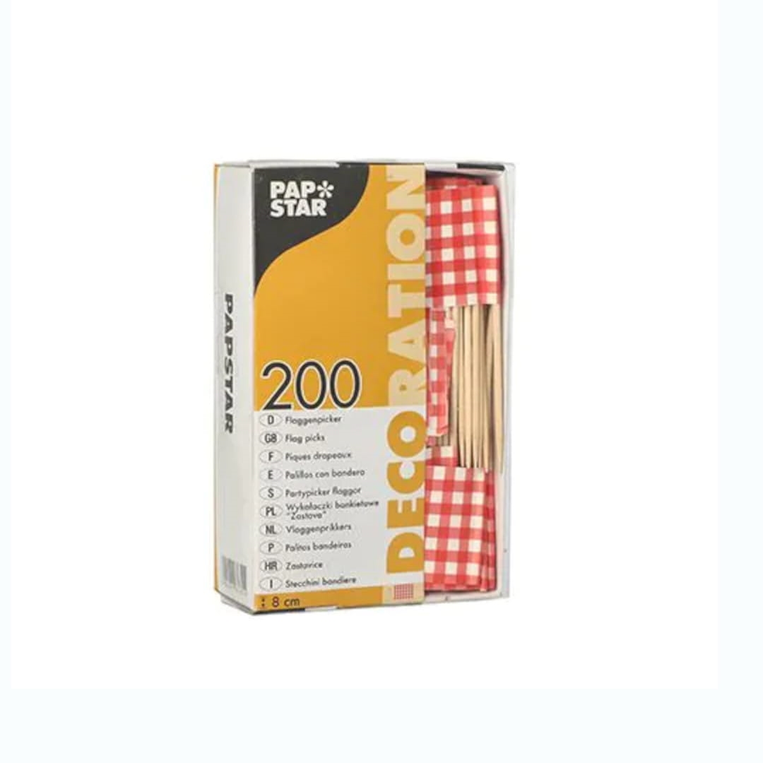 Kageflag/cocktailflag på træpind 200 stk Rød/hvid ternet