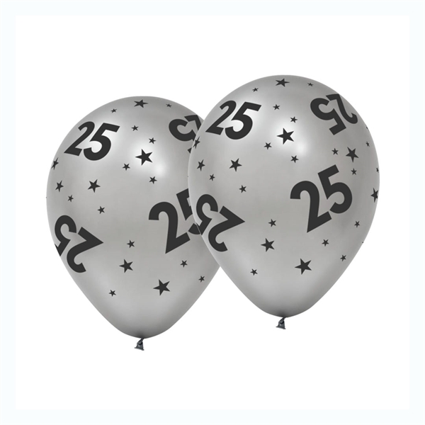 Latexballon Sølv 30 cm. 25 års 6 stk.