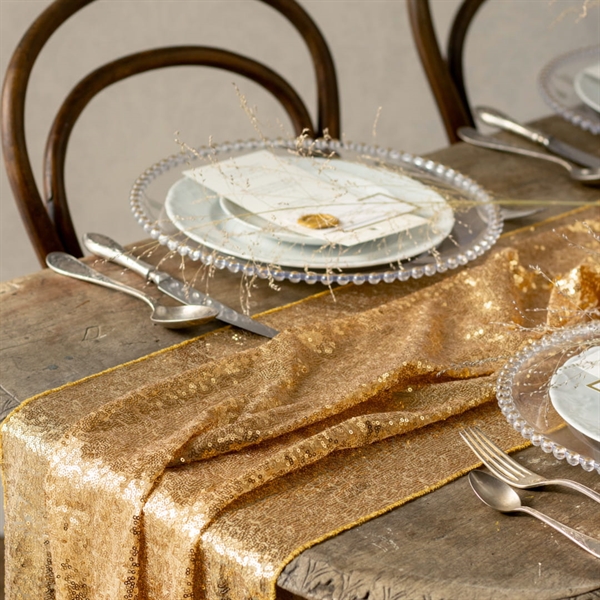 Pailliet Bordløber 30 cm. x 5 meter Guld