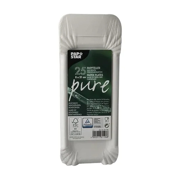 Pure Miljøvenlig Pølsebakke Hvid 8 x 21 cm. (25 stk.)