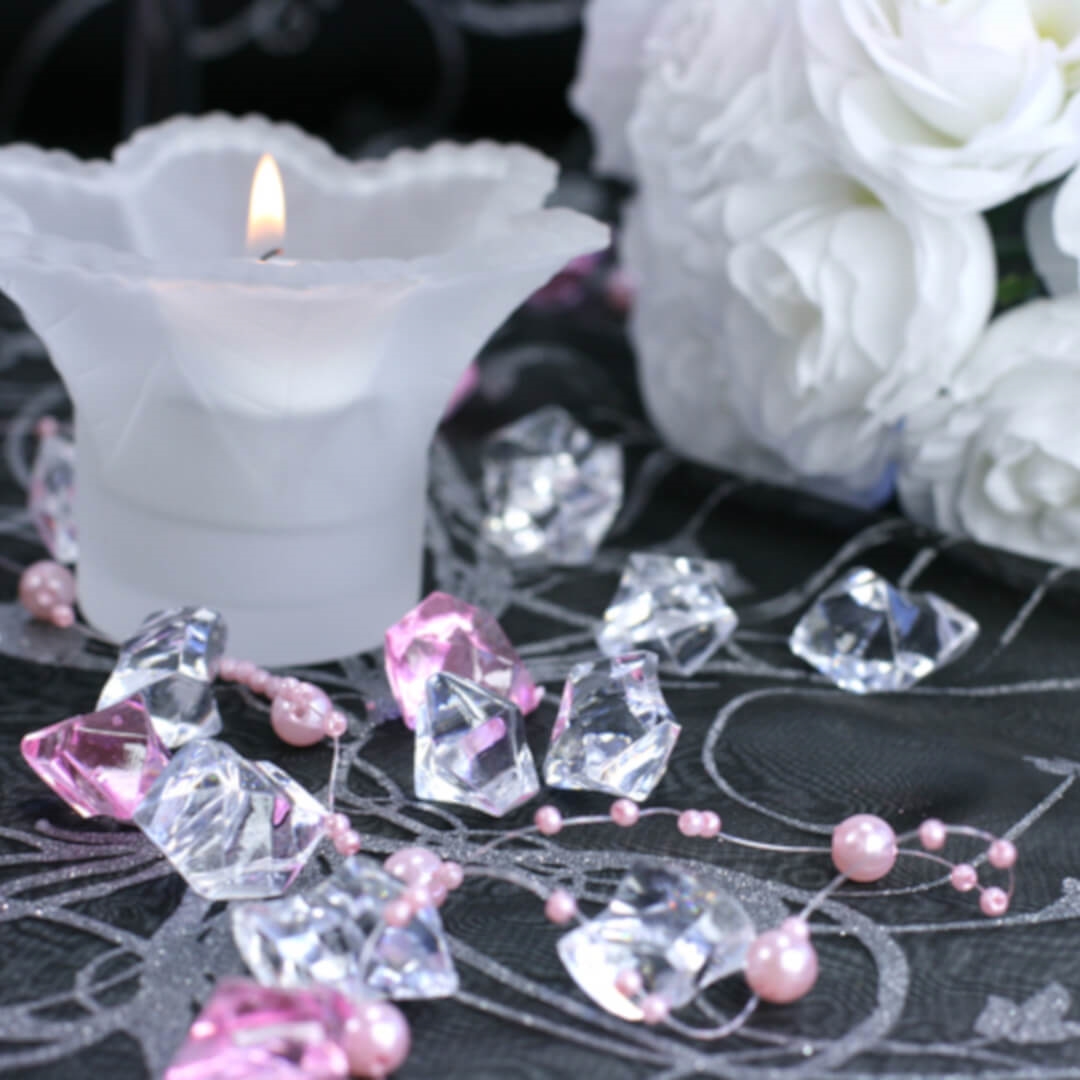 Pynt dit bord op med disse flotte, funklende dekorationskrystaller. Perfekte til bryllupper, jubilæer og meget andet. Disse plastik-krystaller kommer i poser á 50 stk. og måler 25 x 21 mm.