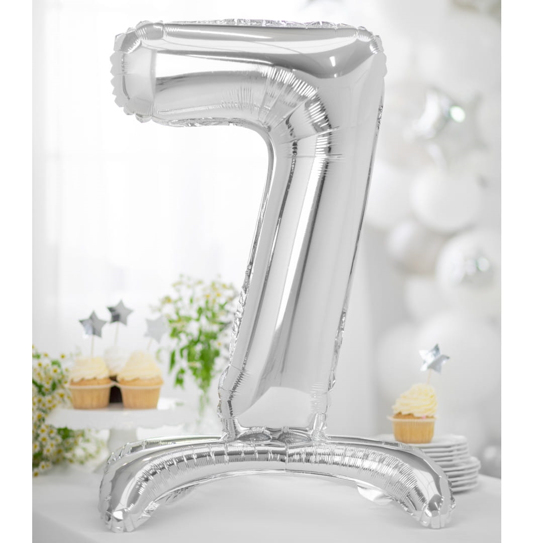 Stående Sølv Folieballon 70 cm. Tal 7